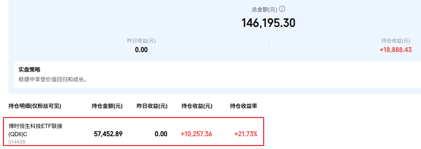 目前主要仓位在恒生科技,持仓5.9w,博时恒生科技为主;沪深300大约持仓2w。