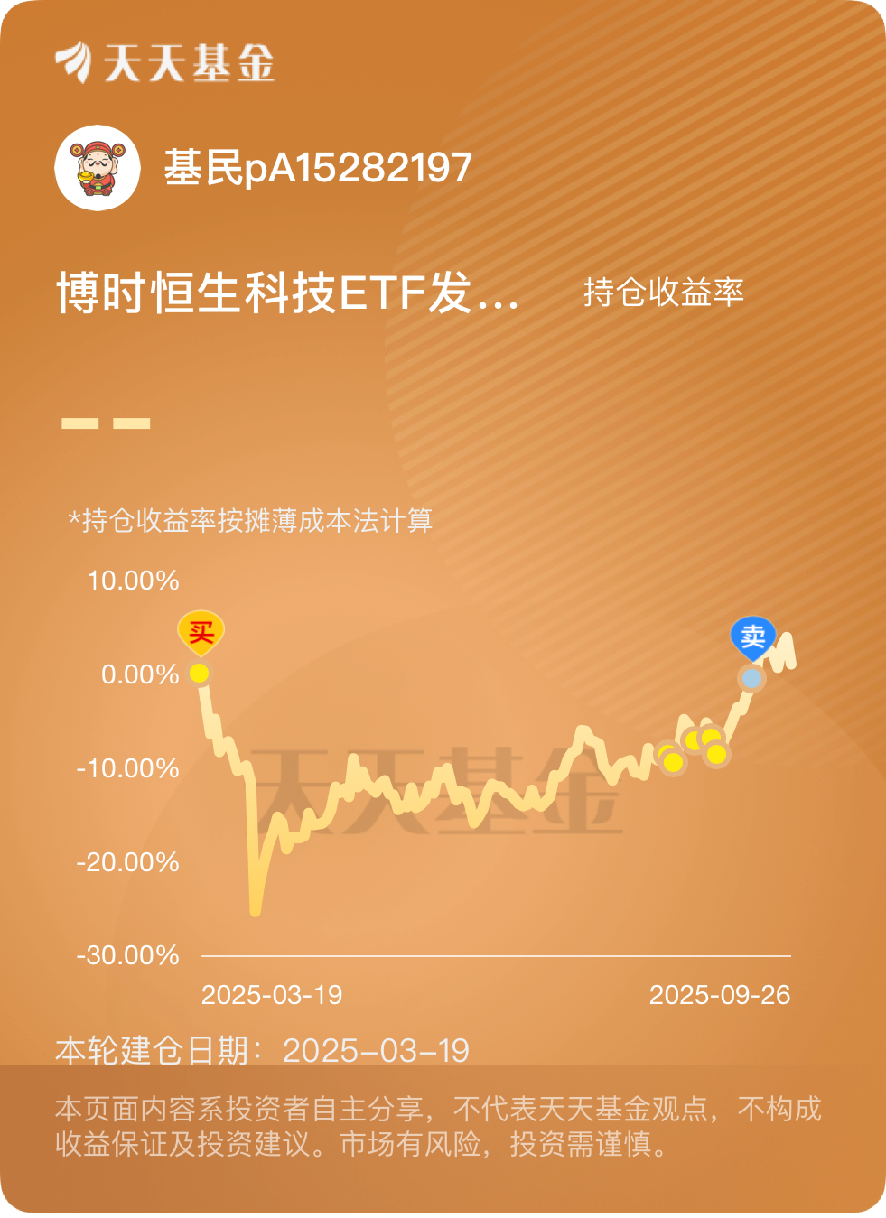 #长假来临 持基过节还是持币过节?# 这这个话题的纠结中,$博时恒生科技ETF发起式联接(QDII)C$ 或许是你持基过节的优质选择。恒生科技指数聚焦港股科技巨头,涵盖互联网、人工智能、半导体等前沿领域。博时恒生科技基金紧密跟踪该指数,将腾讯、美团、小米等一众明星科技企业纳入投资版图。当下,全球科技迭代加速,人工智能浪潮汹涌,港股科技板块估值处于历史低位,博时恒生科技此时布局,正逢行业景气度回升与估值修复的双重契机。长假期间,外围市场动态、行业政策等消息面变化或为港股科技带来催化。持有博时恒生科技,既能分享港股科技龙头的成长红利,又可借助基金的专业运作分散个股风险。对于看好科技长期发展、愿意承受短期波动的投资者,持基过节,或能在节后收获科技成长的惊喜。