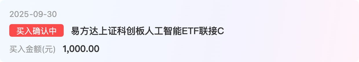 今日加仓1000元$易方达科创人工智能ETF联接C(OTCFUND|023565)$