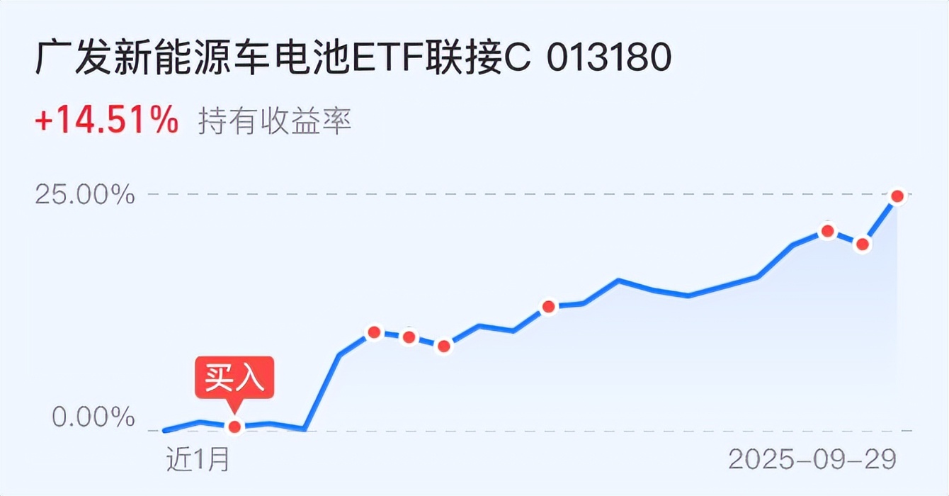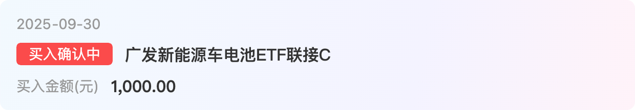 最近持续定投了,今日新能源电池持仓走强,继续定投加仓1000元$广发国证新能源车电池ETF联接C(OTCFUND|013180)$
