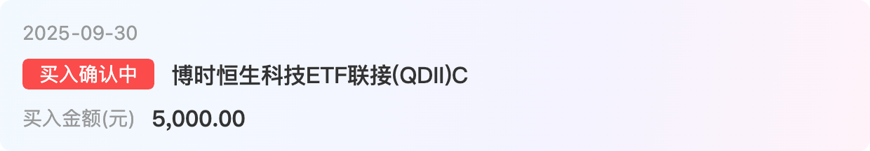 该基金跟踪恒生科技指数,覆盖互联网科技、半导体、智能汽车、智能硬件等核心科技板块。与2021年相比,如今AI应用已深度渗透:阿里巴巴加大AI算力布局,腾讯发力AI应用端,小米自研芯片并拓展多硬件品类,推动恒生科技价值重估,后市科技值得期待。今日继续加仓5000元,强化港股科技主线布局。