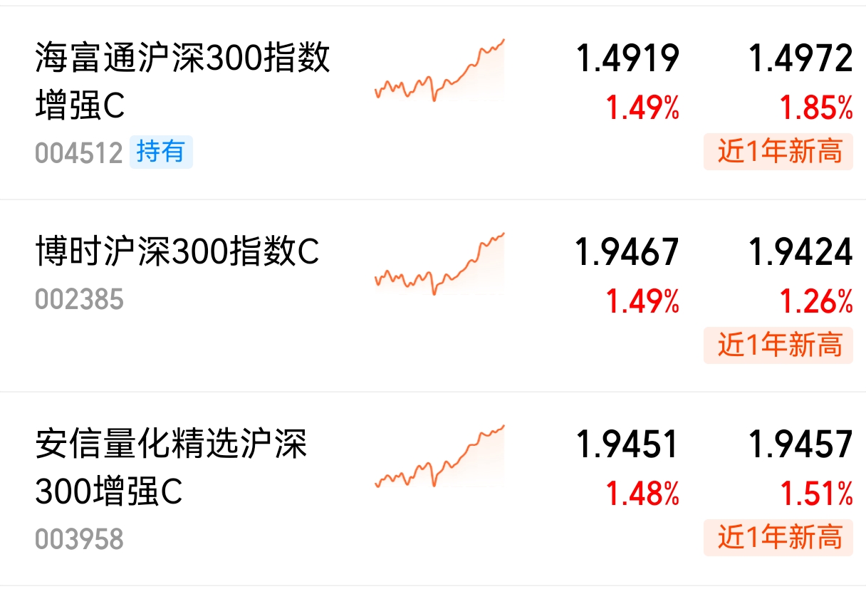 $海富通沪深300指数增强C(OTCFUND|004512)$涨幅1.85%,比指数涨得好