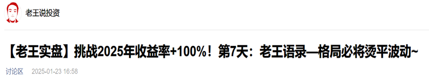 分别是2024.9.20(开始坚定看好)、2024.11.26(加仓)、2025.1.23(格局必将烫平波动),分别对应下图中的位置,自行带入感受一下老王的魅力!!!