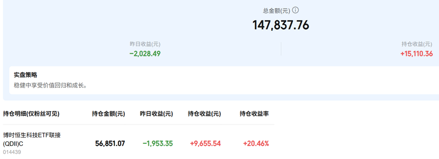 目前主要仓位在恒生科技,持仓5.9w,博时恒生科技为主。