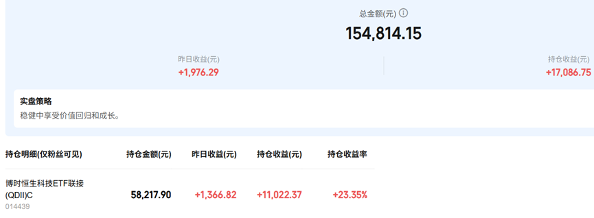 目前主要仓位在恒生科技,持仓5.9w,博时恒生科技为主。