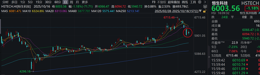 1)盘面上,如图1,恒生科技今天震荡走低,尾盘跌幅有所收窄,最后收跌1.18%,目前仍在60日均线支撑位附近,明后几天又要考验60日均线的支撑情况了。当下行情核心还是外w的不确定性存在,目前这个账户的恒科会继续持有,如果有好的机会,后面会继续加仓的。