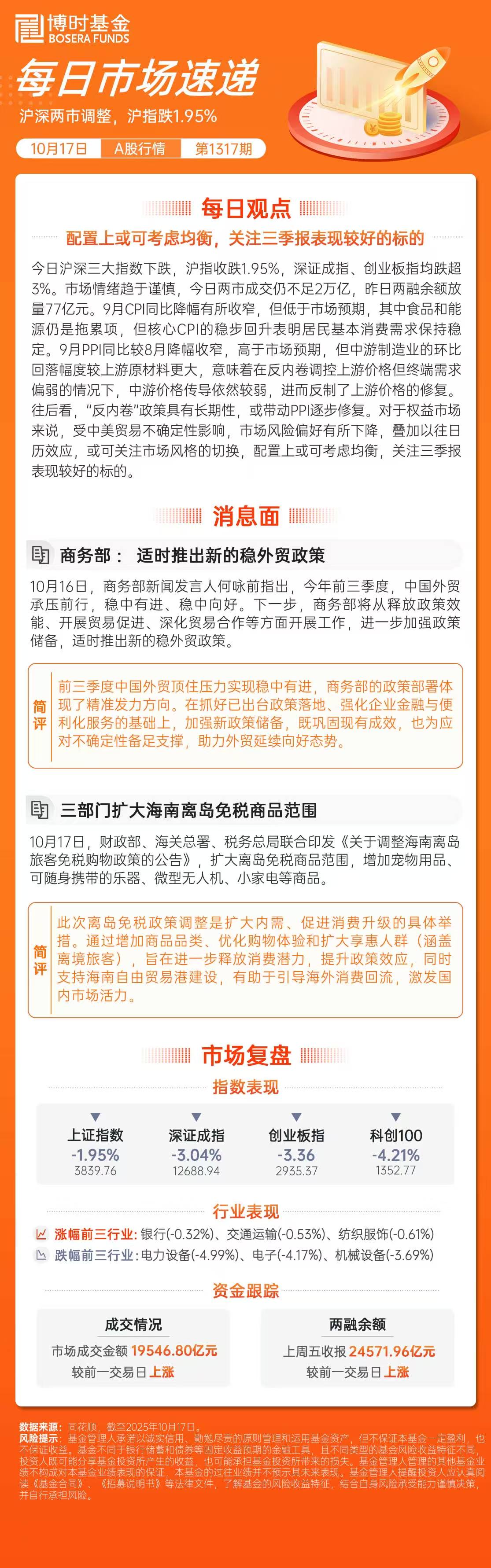 【博时市场点评10月17日】沪深两市调整,沪指跌1.95%