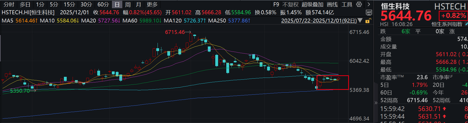 随着外部压制因素减弱,兼具低估值、高成长、稀缺性以及AI切实催化的恒生科技指数,其修复动能正在积聚,有望早于A股和恒指,率先回归震荡上行轨道。