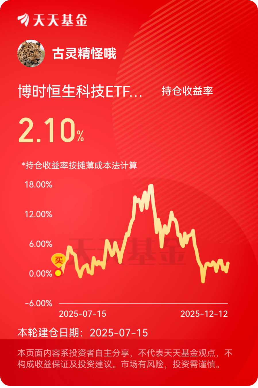#12月基金投资策略# 刚结束的中央经济工作会议直接给科技站台,要培育新动能还支持AI+产业链,加上美联储降息落地,全球资金都在找优质洼地,港股科技简直占尽天时。$博时恒生科技ETF发起式联接(QDII)C$ #晒收益#