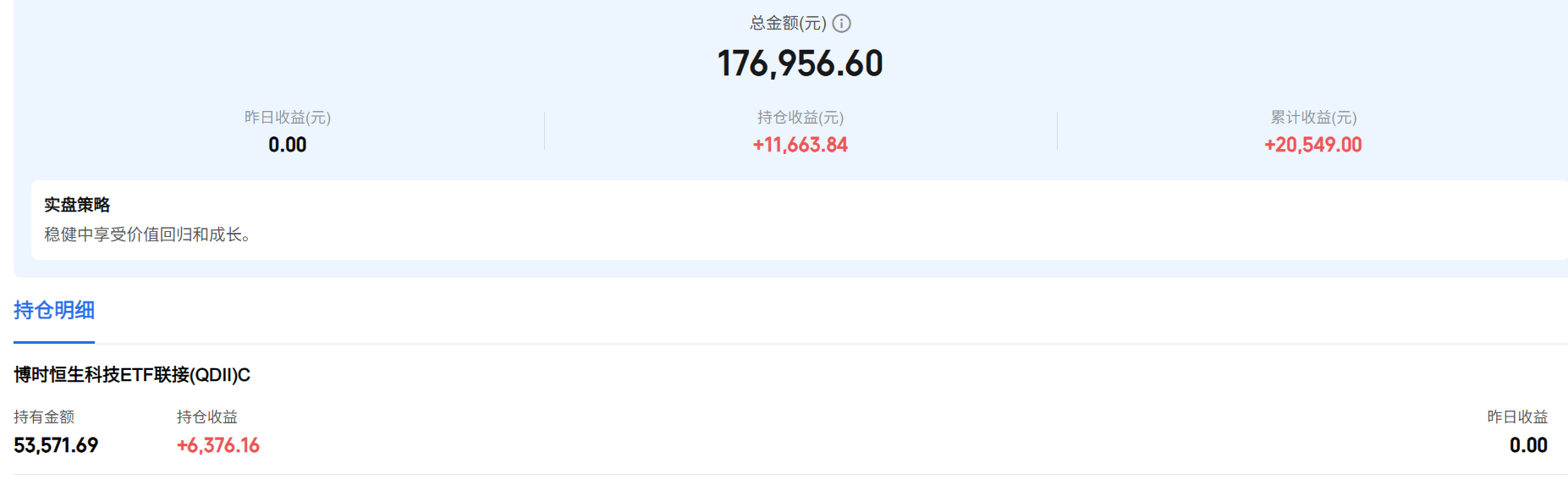 目前主要仓位在恒生科技,持仓5.4w。