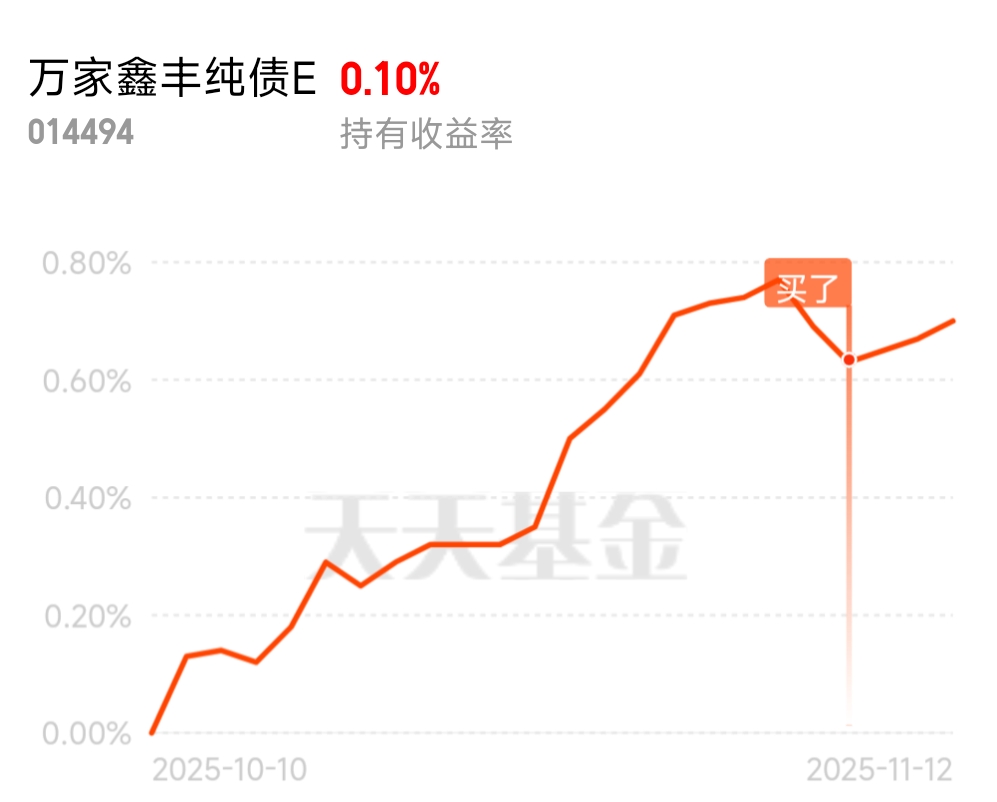十月的债基还是很出色的,弥补了89月的回撤,本月正好上车寻找一波年末安稳的收益机会!$万家鑫丰纯债E$