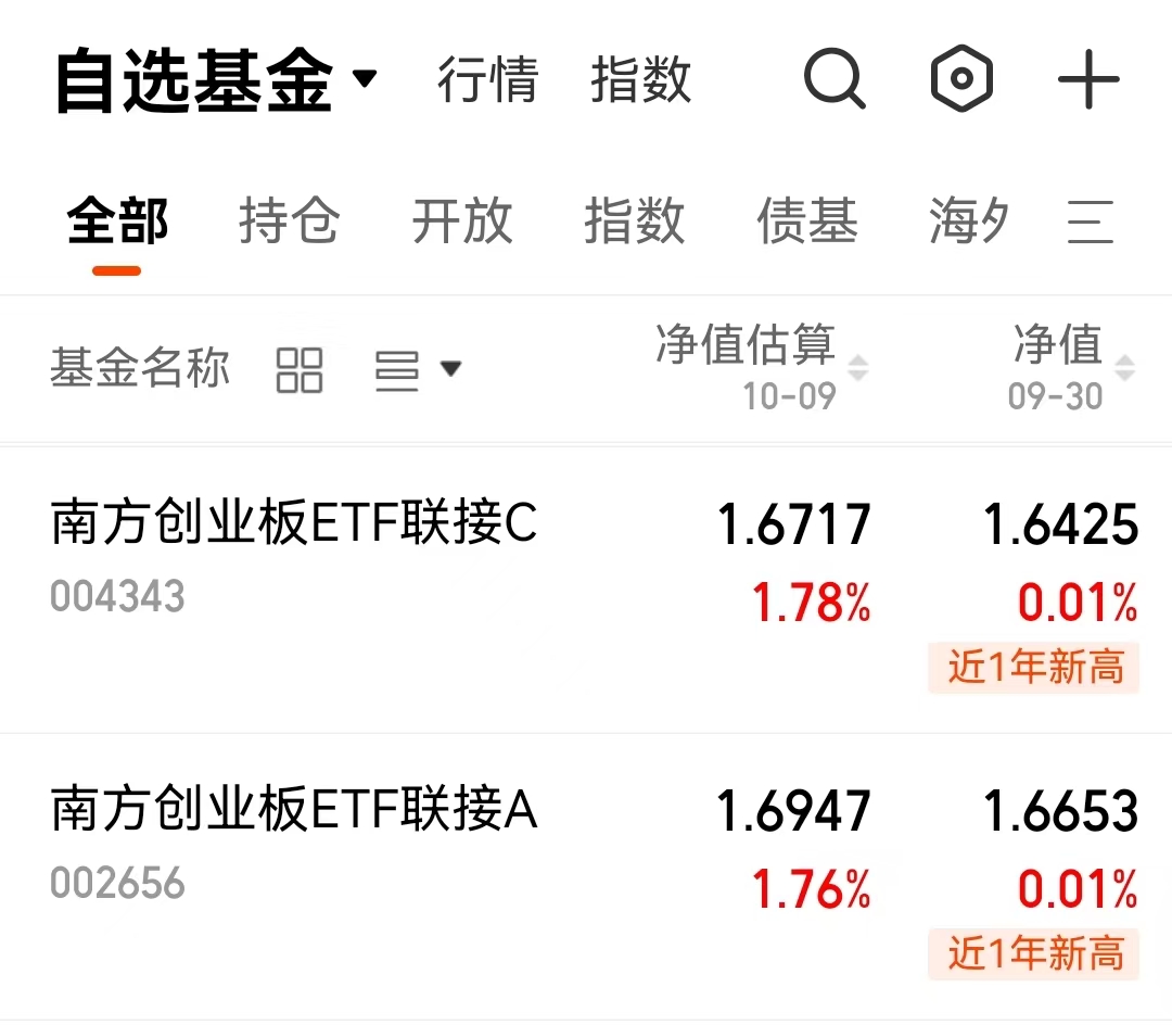 看看这走势图,创业板的活力真是让人惊叹,一波接一波地往上走。这时候如果选的产品跟不上节奏,那真是要拍大腿了。我为什么留意$南方创业板ETF联接A$(002656),就是因为它的跟踪误差控制得好,在同类里算是出色的。这意味着指数涨的时候,它能最大限度地跟上,不会打折。对于我们想分享创业板上涨红利的人来说,这种特性太重要了,能让我们实实在在地吃到涨幅。#10月基金投资策略#