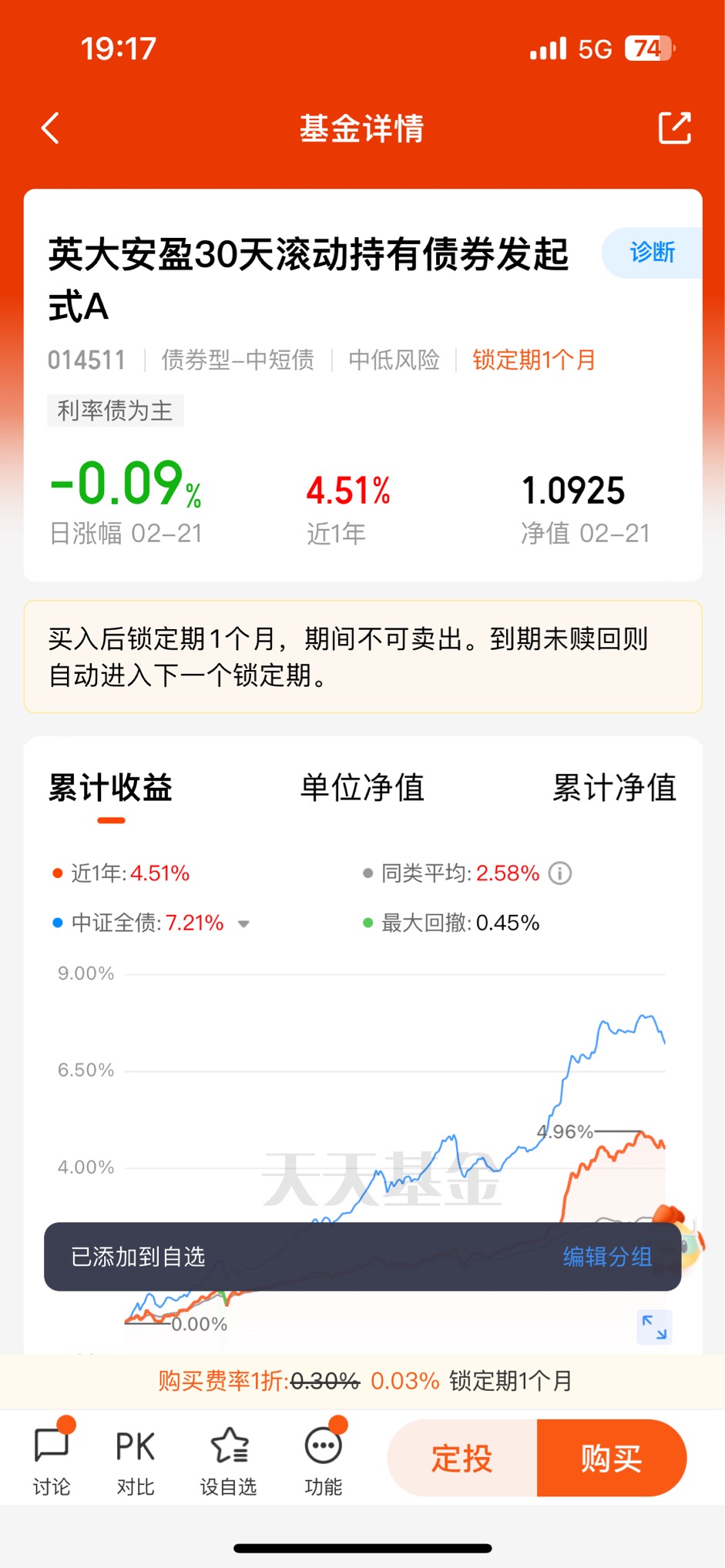 #我与英大安盈30天+陪伴安盈的第1天,英大安盈30天债基投资收益率相对比较稳定,非常适合闲钱理财的小伙伴们进行长期持有!只要长期持有这只债基,就可以让我们得闲钱稳稳的收获好收益!!
