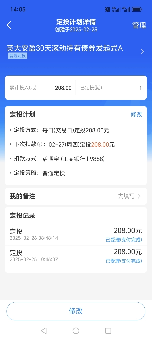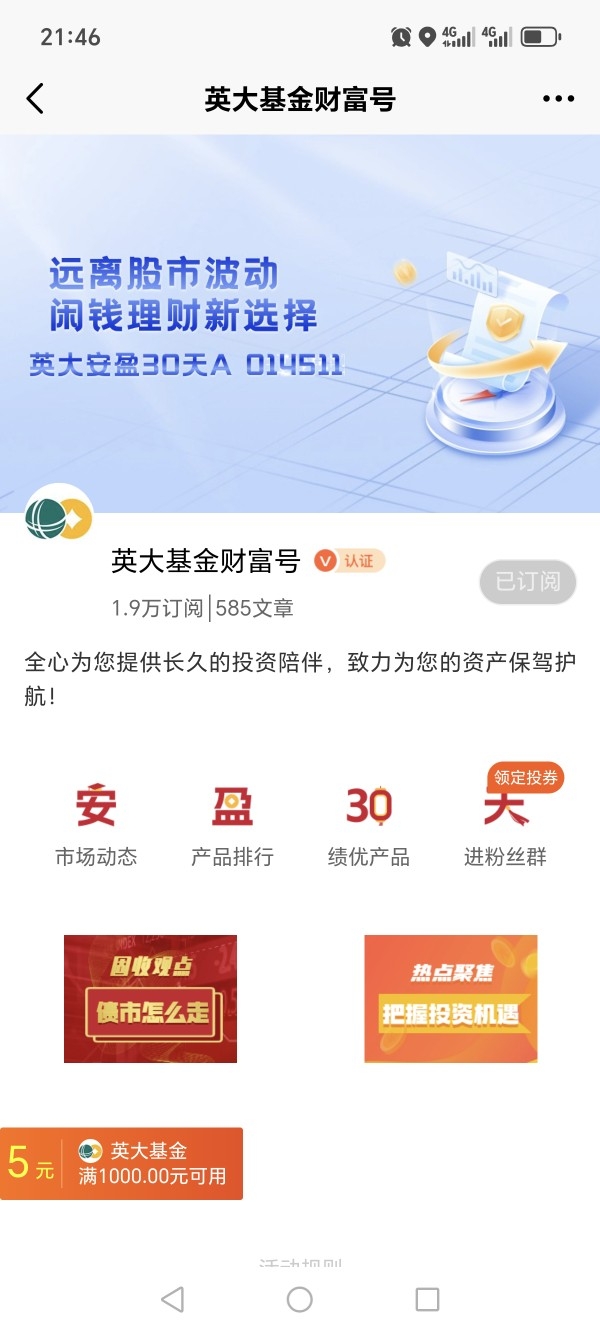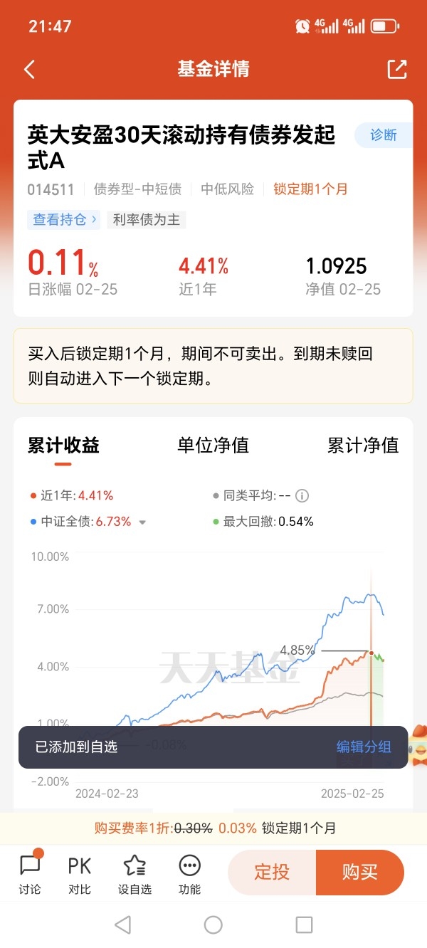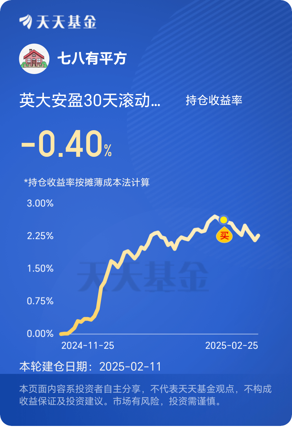 #我与英大安盈30天#+陪伴安盈的第3天,吕一楠基金经理的择时能力非常强,从这款基金从成立至今,债市一直处于牛市,而这款基金对于债券类资产的布局,一直是高仓位运作,所以这是它取得不错成绩背后的一个重要的原因,另外这款基金是持有30天之后才可以要求赎回的,这无疑给了一些性格比较急躁的投资者一个冷静期,同时也可以让很多投资者明白什么是长线是金,今天继续坚持日定投,坚持到底,就是胜利。@英大基金