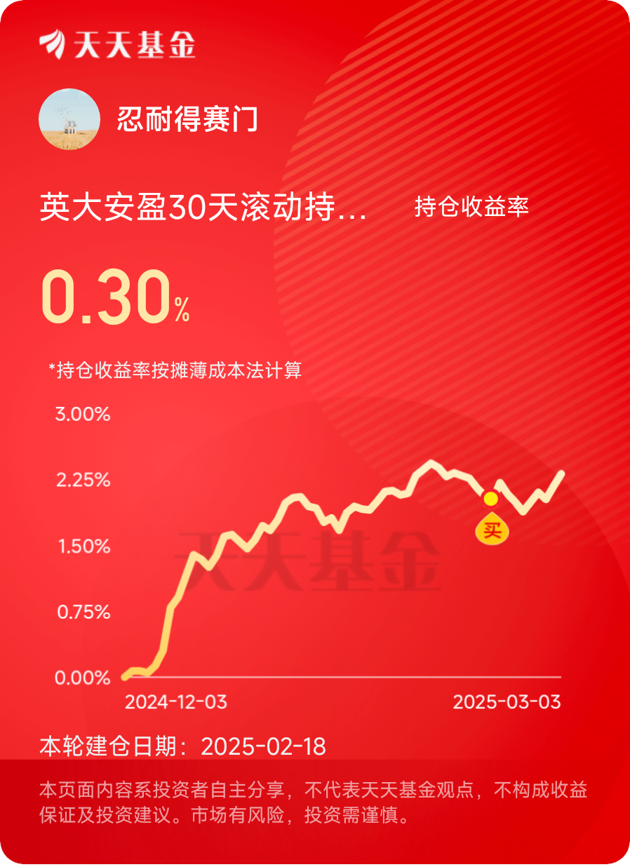 所以啊,朋友们,别再让你的零散资金“躺平”了,快来试试英大安盈30天吧!让你的资金也“站起来”,成为你理财路上的得力助手!轻松管理短期资金,就是这么简单#晒收益#