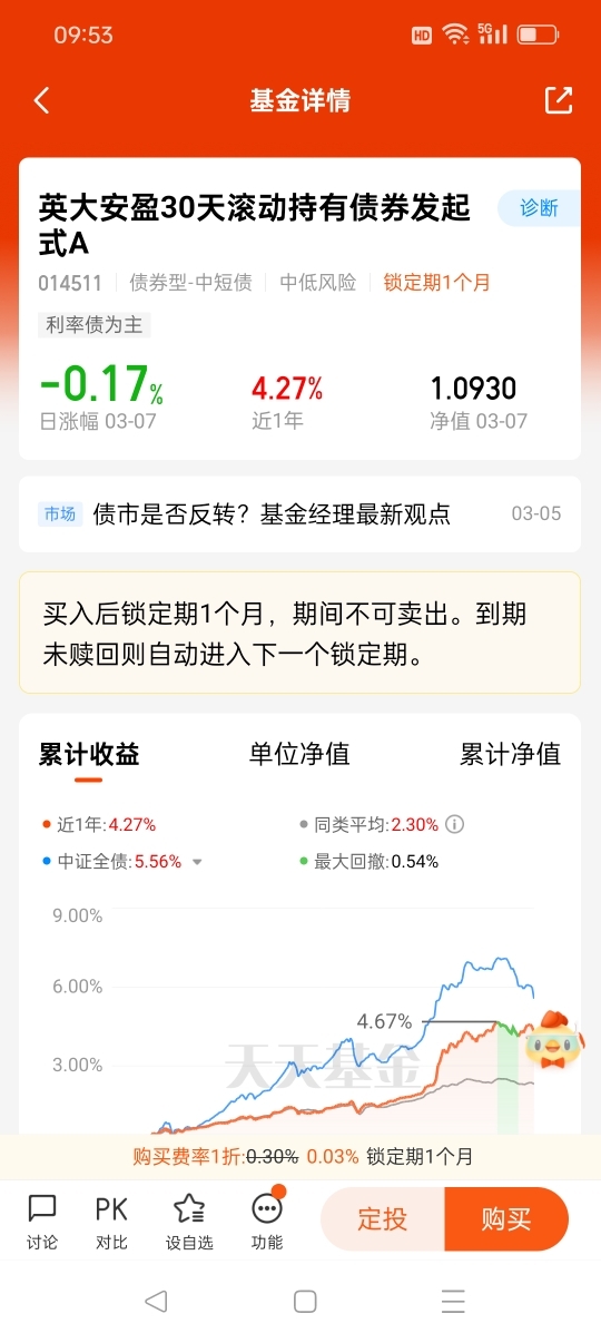 +陪伴安盈的第2天,近期债市回调,是逢低布局绩优债基的好机会!$英大安盈30天滚