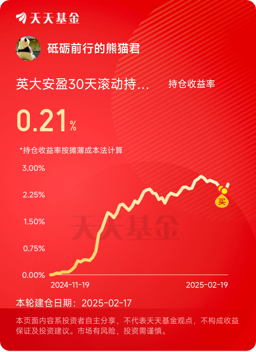 #我与英大安盈30天+陪伴安盈的第3天今日$英大安盈30天滚动持有债券发起式C$