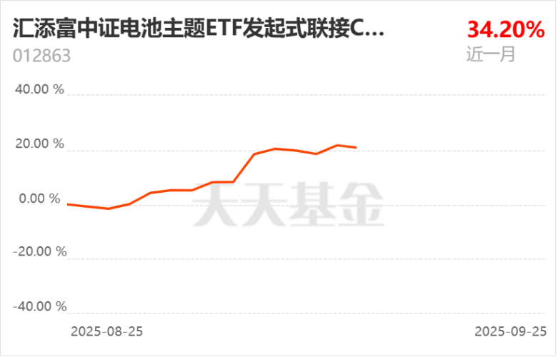 大科技已经涨了好一阵子,估值已经在相对高位,现在更适合快进快出做短线,而低估值的固态电池上涨空间更大,机会大于风险,今天趁调整加$汇添富中证电池主题ETF发起式联接C(OTCFUND|012863)$,连涨四天后,今天小幅调整,能涨抗跌,近一个月+34.02%,近三个月+56.94%,近一年+91.25%,各阶段业绩表现不错,尤其近期展现了很强的爆发力,赚钱能力杠杠滴!