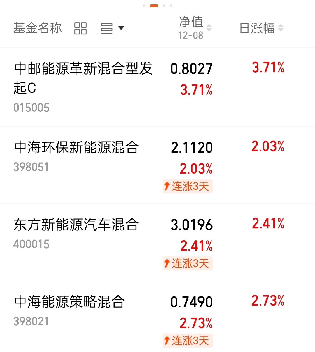今天的电池都普遍只涨了1个点多,还是$中邮能源革新混合型发起C$不错,今天大涨超