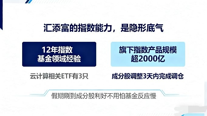 第二,汇添富的指数能力,是隐形底气。我查过,汇添富在指数基金领域做了12年,旗下指数产品规模超2000亿,光云计算相关的ETF就有3只,对这个赛道的理解比小公司深。比如去年指数调整成分股,把某家云计算安全公司加进来,这只基金3天内就完成了调仓,没有滞后——假期刷到成分股利好,不用怕基金“反应慢”,这才是“卷王”要的效率。
