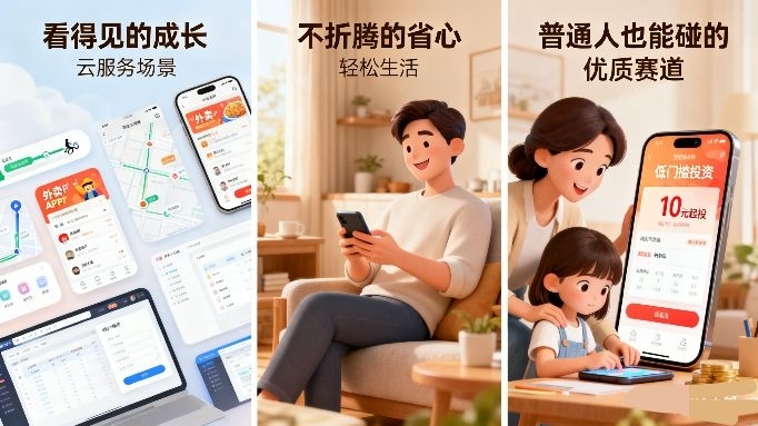 一是“看得见的成长”:每次用云服务(比如导航、外卖、线上办公),我都能想起“我投的赛道正在变好”,不是拿着一堆看不懂的“概念股”,这种“体感式投资”让我不慌;
