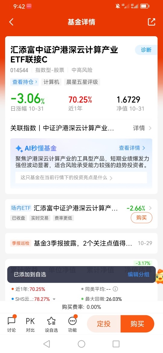 因此我选择了汇添富中证沪港深云计算产业ETF联接C(014544),因为汇添富基金在投资领域相当专业。@汇添富基金