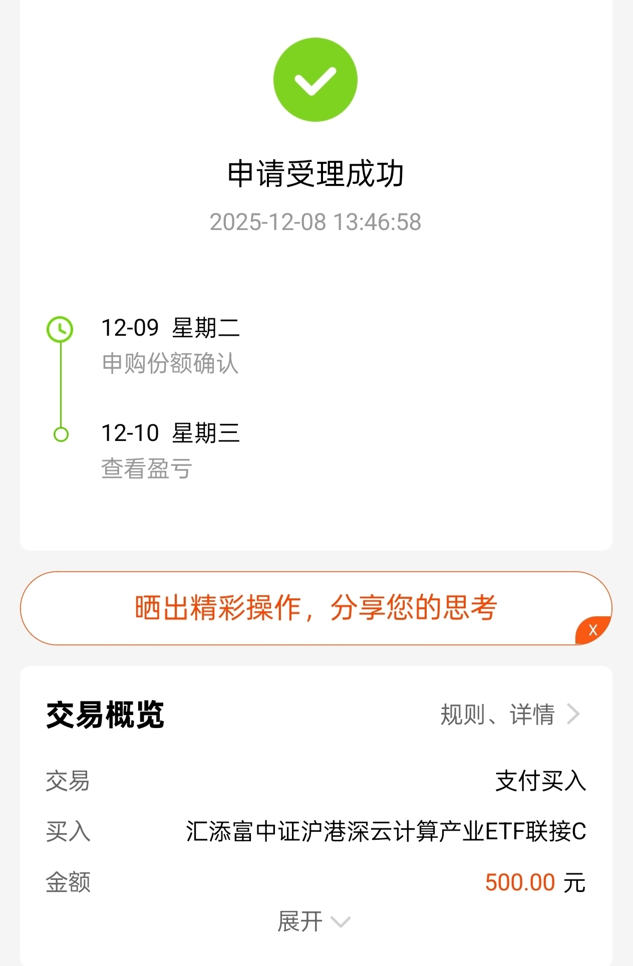 我持有的汇添富中证沪港深云计算产业指数C(014544)今天盘中涨了3.69%,上周五也有小幅上涨,目前持仓收益已经挺不错。这只基金覆盖了A股和港股的云计算龙头,比如新易盛、中际旭创这类光模块企业,还有腾讯、阿里这些互联网巨头,前十大重仓占比接近60%,集中度比较高。过去一年,这只基金涨了62%左右,在同类里表现不错。