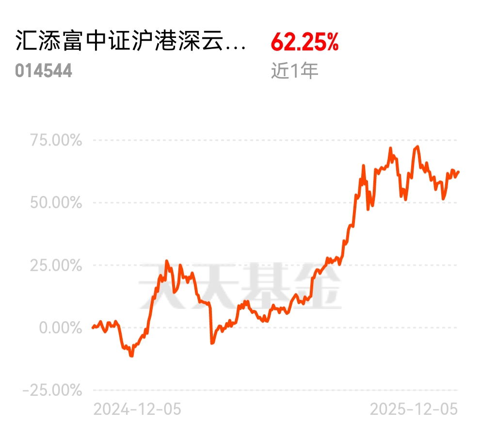 而这支$汇添富中证沪港深云计算产业ETF联接C$ ,重点覆盖A股+港股云计算方向,包括新易盛、中际旭创等CPO龙头,同时一键打包阿里、腾讯两大云厂商,前十大权重股占比近60%,更加聚焦不同市场龙头,算是比较稀有的能覆盖到港股的云计算指数了,这波也是完美赶上了修复;
