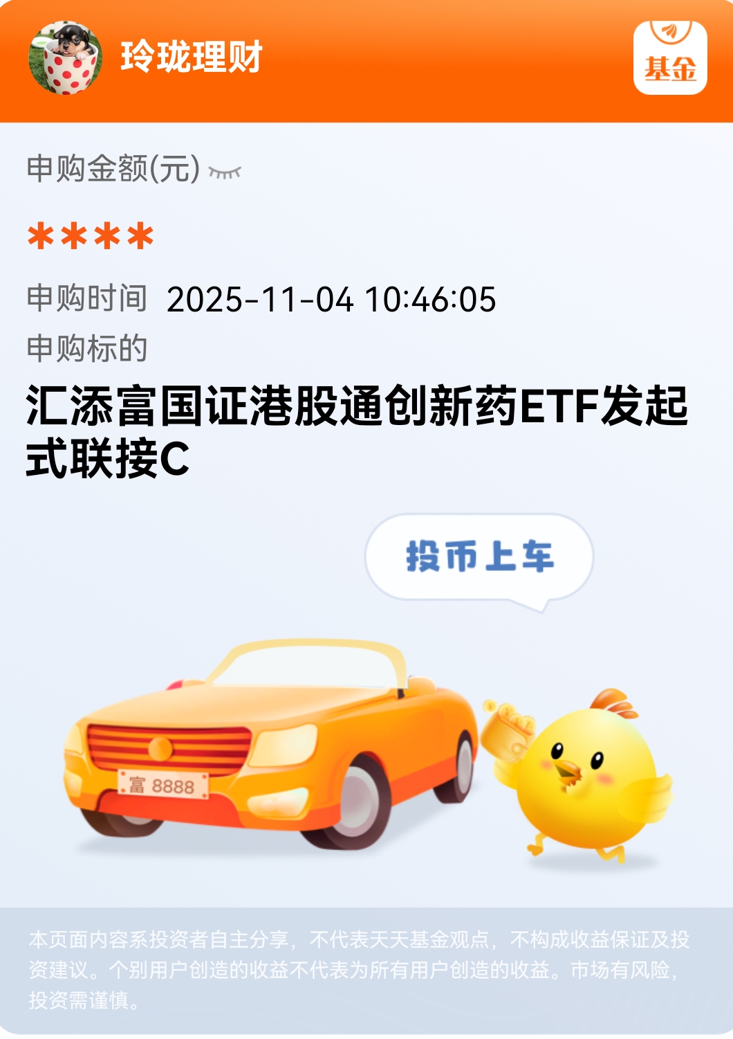 趁着调整这时候当然要加仓了,今日加一波$汇添富国证港股通创新药ETF发起式联接C(OTCFUND|021031)$,整体来看业绩还是很不错的,近六个月涨幅36.75%,近一年涨幅70.62%,弹性十足,美联储进入降息周期的背景下,全球创新药研发持续活跃,看好创新药的整体行情。