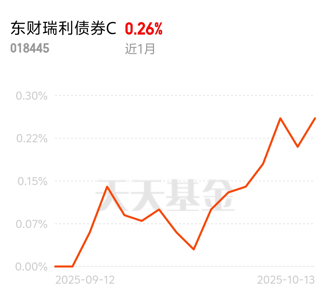 今天债市反弹迹象明显,资金面也比较宽松,适合布局低风险品种。西藏东财瑞利债券C近日涨0.05%,近1个月收益0.26%,业绩稳,现在上车时机正好。