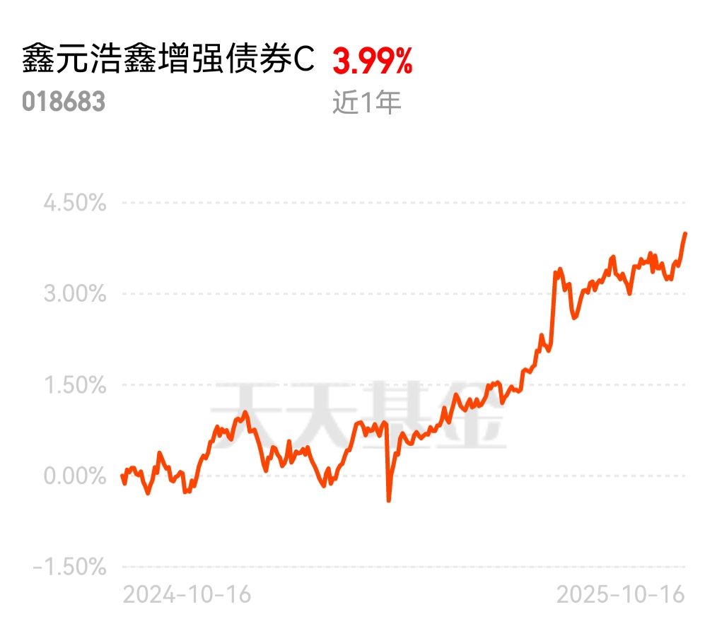 现在债市虽说来回震荡,但资金面一直宽松,央行也有稳市场的预期,十年期国债收益率没大起伏,就是纯债收益有点平淡,股市又老蹦跶让人慌。增强债就刚好,靠债券打底稳得住,还能靠策略多赚点。鑫元浩鑫增强债券 C 当下位置正合适,想稳当又不想少赚的,上车准没错,波动小还能有盼头!$鑫元浩鑫增强债券C$