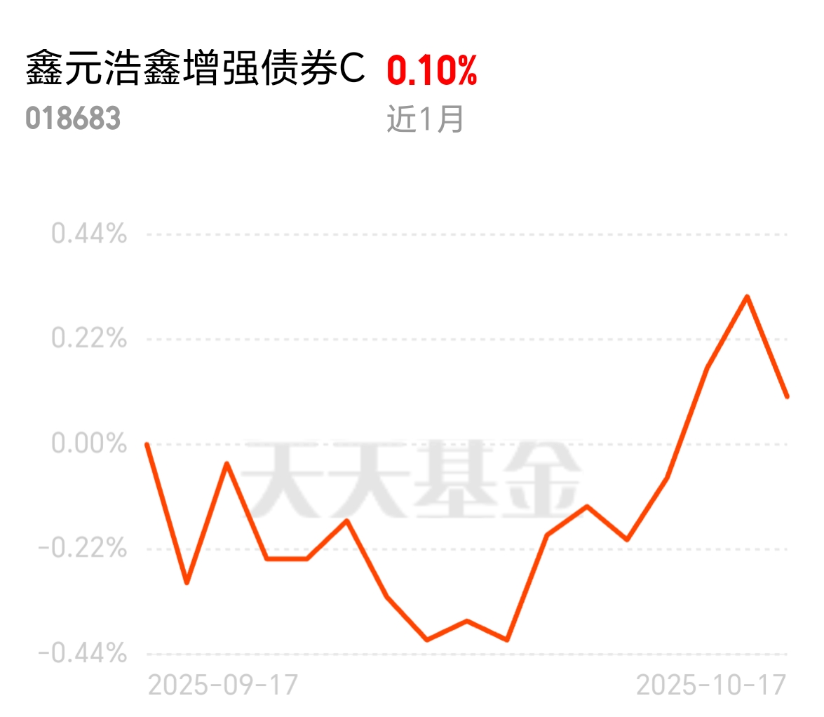 现在债市虽说来回晃,涨点跌点的,但钱一直松,央行也有稳市场的预期,十年期国债收益率没大起伏,就是纯债收益有点平淡,股市又老蹦跶让人慌。增强债就刚好,靠债券打底稳得住,还能靠策略多赚点。鑫元浩鑫增强债券 C 当下位置正合适,想稳当又不想少赚的,上车准没错,波动小还能有盼头!