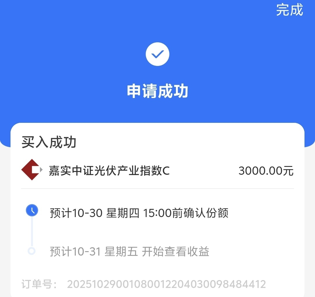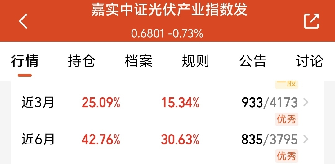今天市场行情一般,不过光伏板块迎来了反弹,该板块正迎来政策与需求共振的黄金窗口期,今日强势上涨,储能相关企业表现尤为亮眼,而$嘉实中证光伏产业指数发起式C$ 正好布局的都是储能产业。
