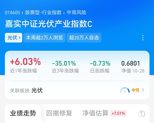 今日光伏赛道迎来强势反弹,板块热度全线拉满,其中$嘉实中证光伏产业指数C$单日涨