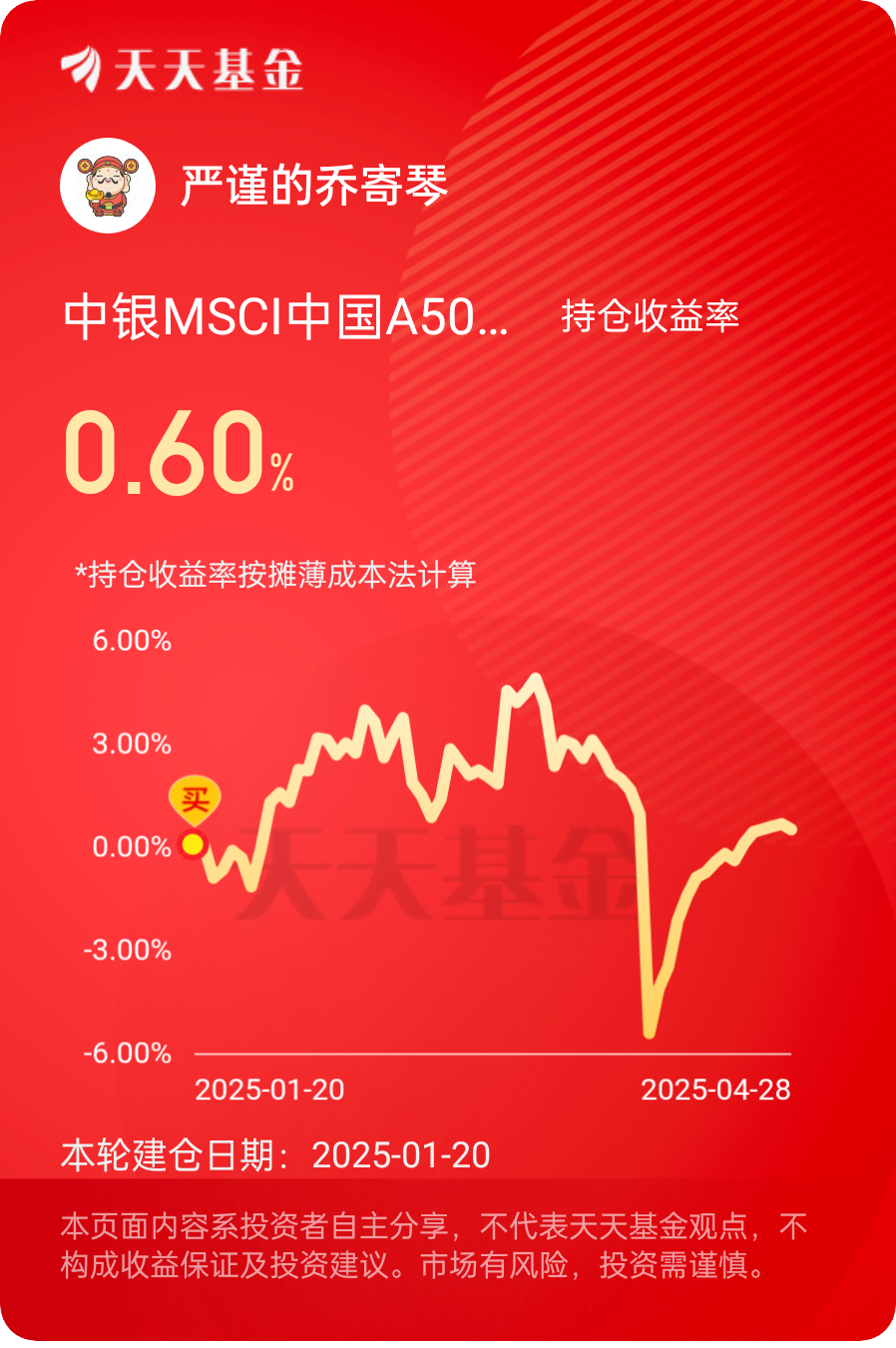 一段时间没来看上周五天连涨啊,最近调整幅度明显变小了继续发力!$中银MSCI中国A50互联互通指数增强C$ #晒收益#