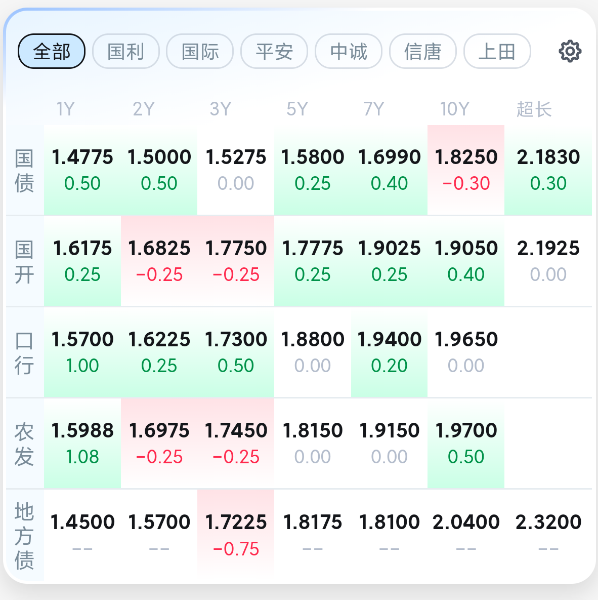 今日权益市场低开低走,但科创和北证50方面有所承接,债市方面利率债窄幅整理,10年期国债250016今日成为活跃券,30年期国债活跃券则为2500006,银行间市场现券收益率普遍变动不大,尾盘再度走强,信用债维持晴天。