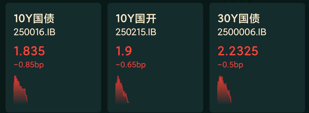 十年期国债收益率:1.835%,-0.85BP(国债收益率越跌,债市越涨)