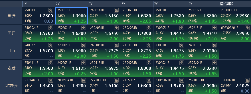 三、银行间市场的主要利率债收益率