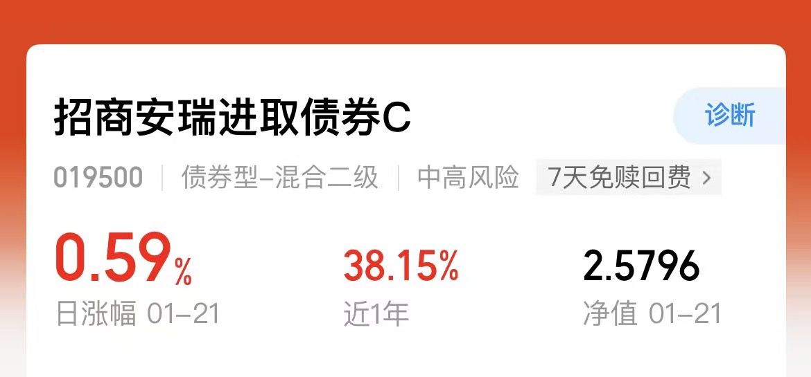 这两天的市场已经调整的差不多了,临近年关调整一下我的持仓,固收类的我是比较看好,又稳又能打$招商安瑞进取债券C$ 昨天收了59个蛋,收蛋之王