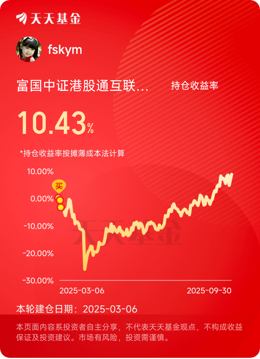 10月我看好港股通互联网投资赛道,我长期持有$富国中证港股通互联网ETF发起式联接C$ ,不少人眼里只有美股新高,但其实我们身边的中证港股通互联网指数,正憋着一波“王炸”级的优势。估值打底、资金来捧、政策撑腰,三个硬核逻辑摆得明明白白,想布局的真可以多看看。