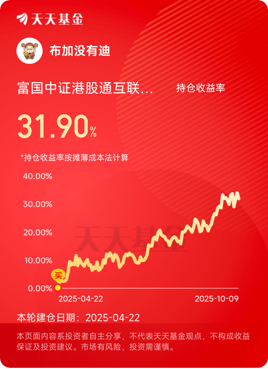 金秋十月,机遇与挑战并存。在纷繁复杂的市场中,找到自己真正理解并信赖的赛道和标的,是投资成功的关键。对我而言,港股互联网就是那个赛道,而富国中证港股通互联网ETF发起式联接C,就是我实现这个投资目标的最佳工具。