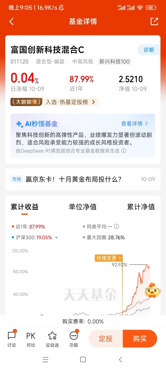 基于对港股互联网赛道的长期看好,以及对富国这只基金的充分信赖,我的策略非常明确:长期持有,并在合适的时机持续加仓。