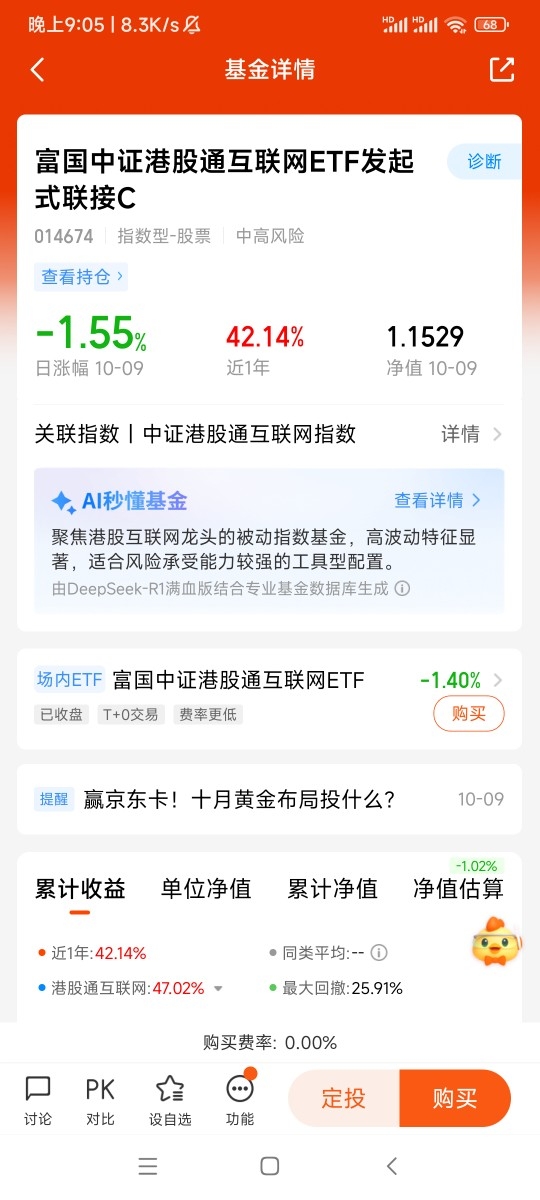 面对市场上热议的港股互联网、AI应用和硬科技三大赛道,我作为一名普通的投资者,心中早有定数。经过审慎的思考和一年多的亲身体验,我坚定地选择并看好港股互联网。这份信心,不仅源于宏观环境的支撑,更来自于我手中那只富国中证港股通互联网ETF发起式联接C(014674) 所带来的实实在在的回报——**31.90%**的持有收益率,以及它所代表的,那份穿越波动、稳健增长的投资价值。