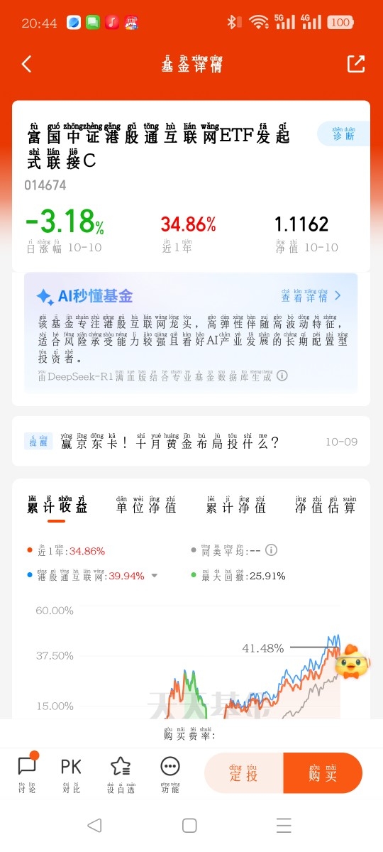 我持有的是跟踪恒生科技的 ETF,长假后已经加了 2 成仓,就赌这波流动性和 AI 红利能共振。