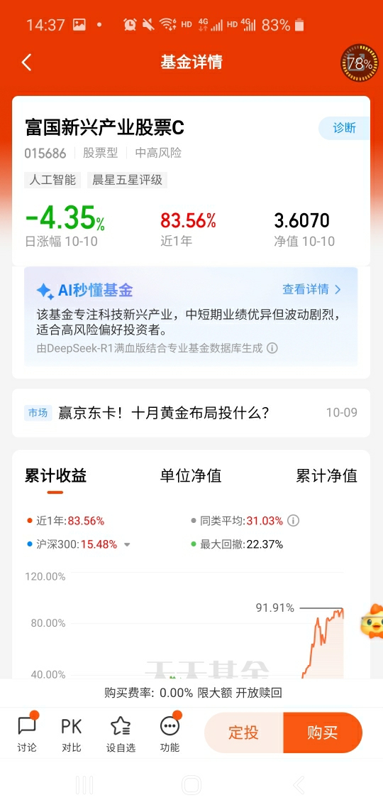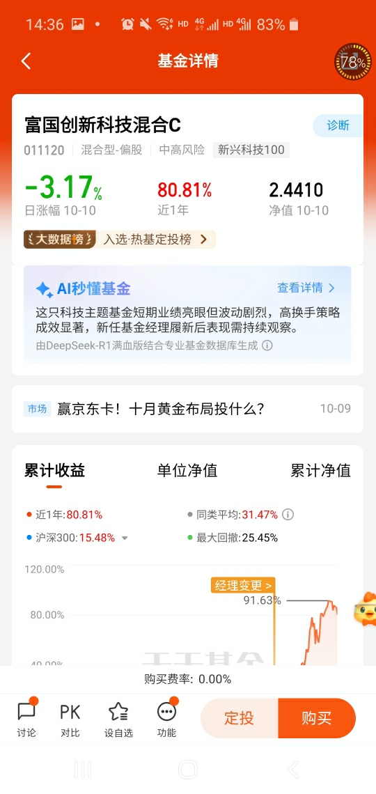 10月两个交易日,港股迎来了持续的回调,我默默地在富国官网加仓了!