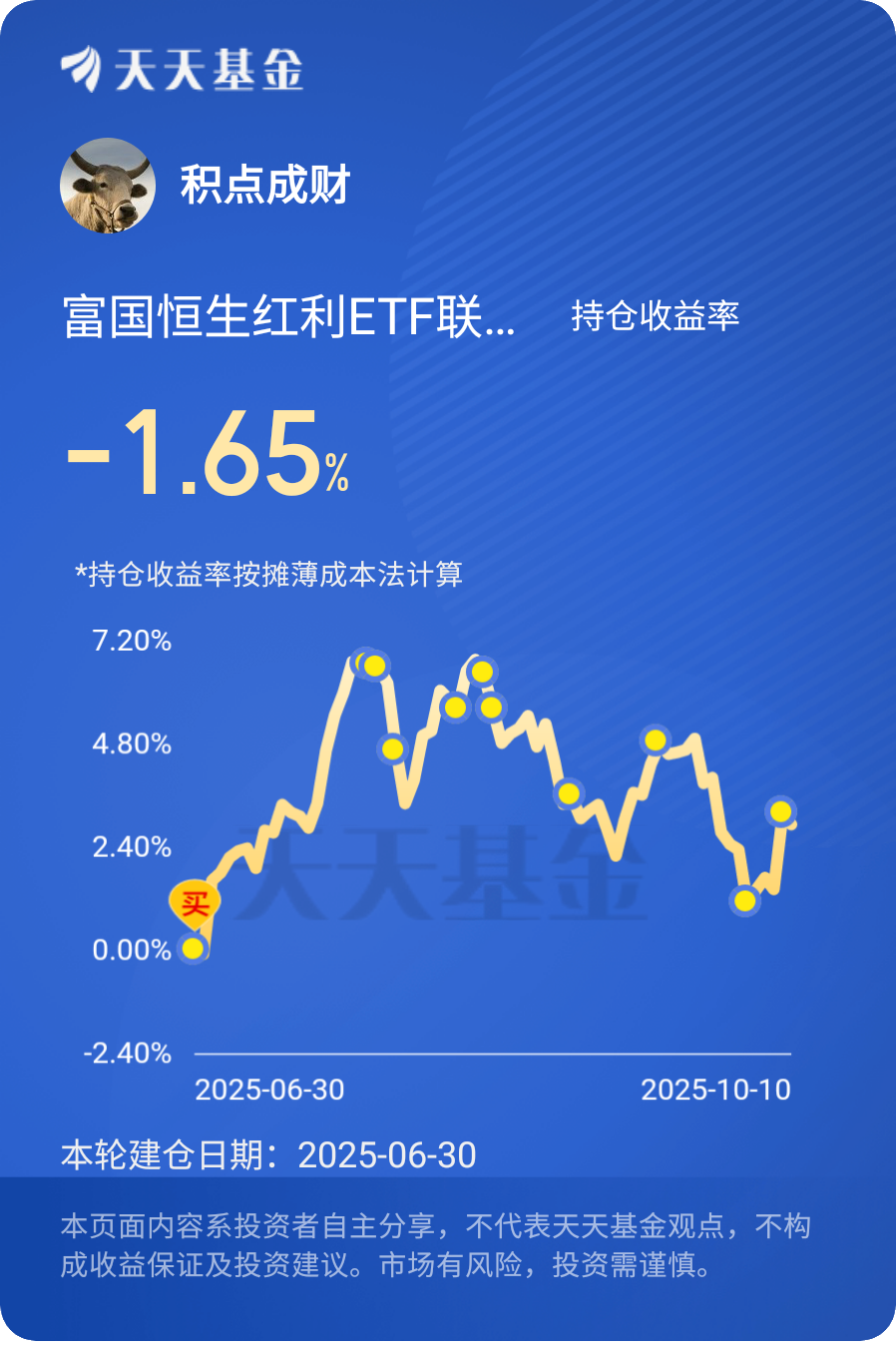 $富国恒生红利ETF联接C$ #晒收益# 定投进行时