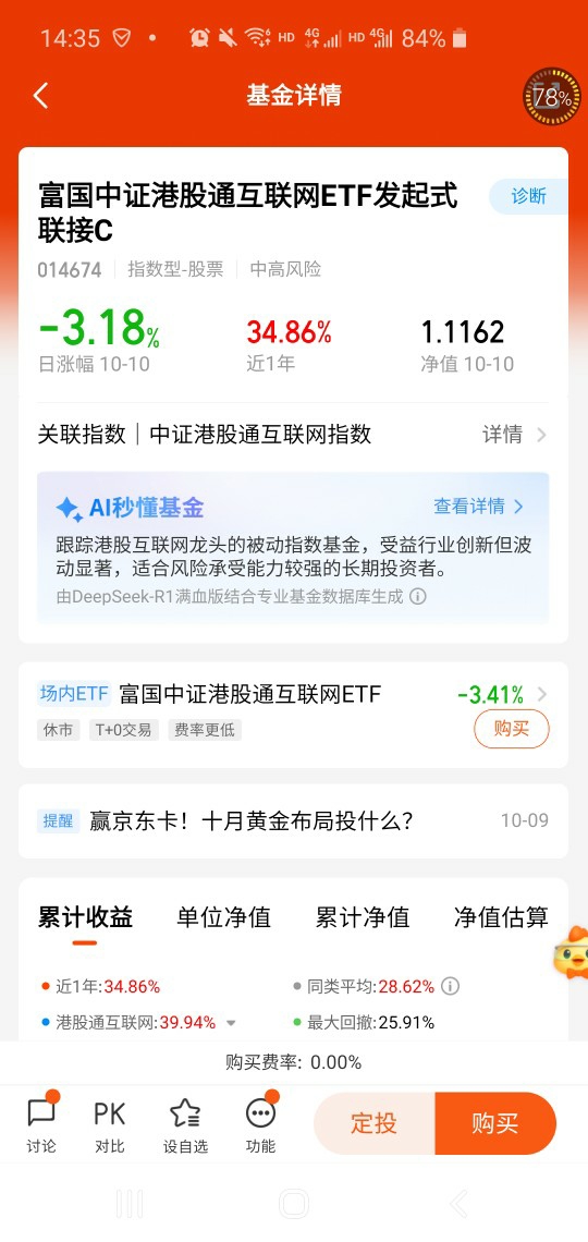 10月份我依然看好港股科技赛道,下跌就是加仓的机会。$富国中证港股通互联网ETF发起式联接C(014674)$ 紧密跟踪港股通互联网指数,它有以下优势: