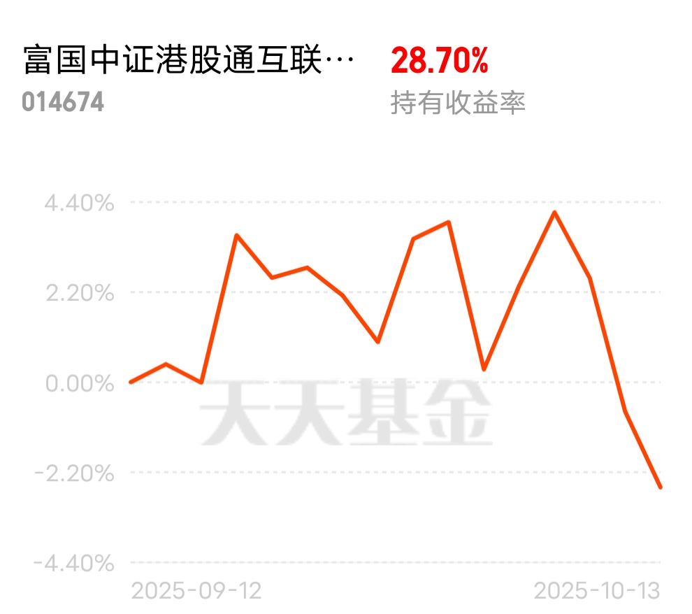 我昨天感觉尾盘有点机会,股市大盘拉起来了嘛,我就再加了点仓,看看今天怎么样$富国中证港股通互联网ETF发起式联接C$