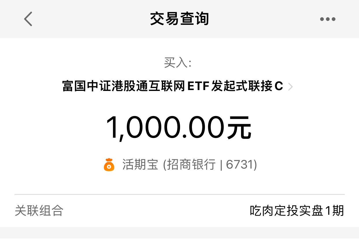 今日加仓1000元港股互联网(010674),$富国中证港股通互联网ETF发起式联接C$ 这波我在持续加仓港股科技资产,今天选择互联网基金,忍住了好几天后,今天以便宜价格买入,还是划算的。港股互联网基金重仓ABM三巨头,走港股通交易,交易效率更高,费率更低。