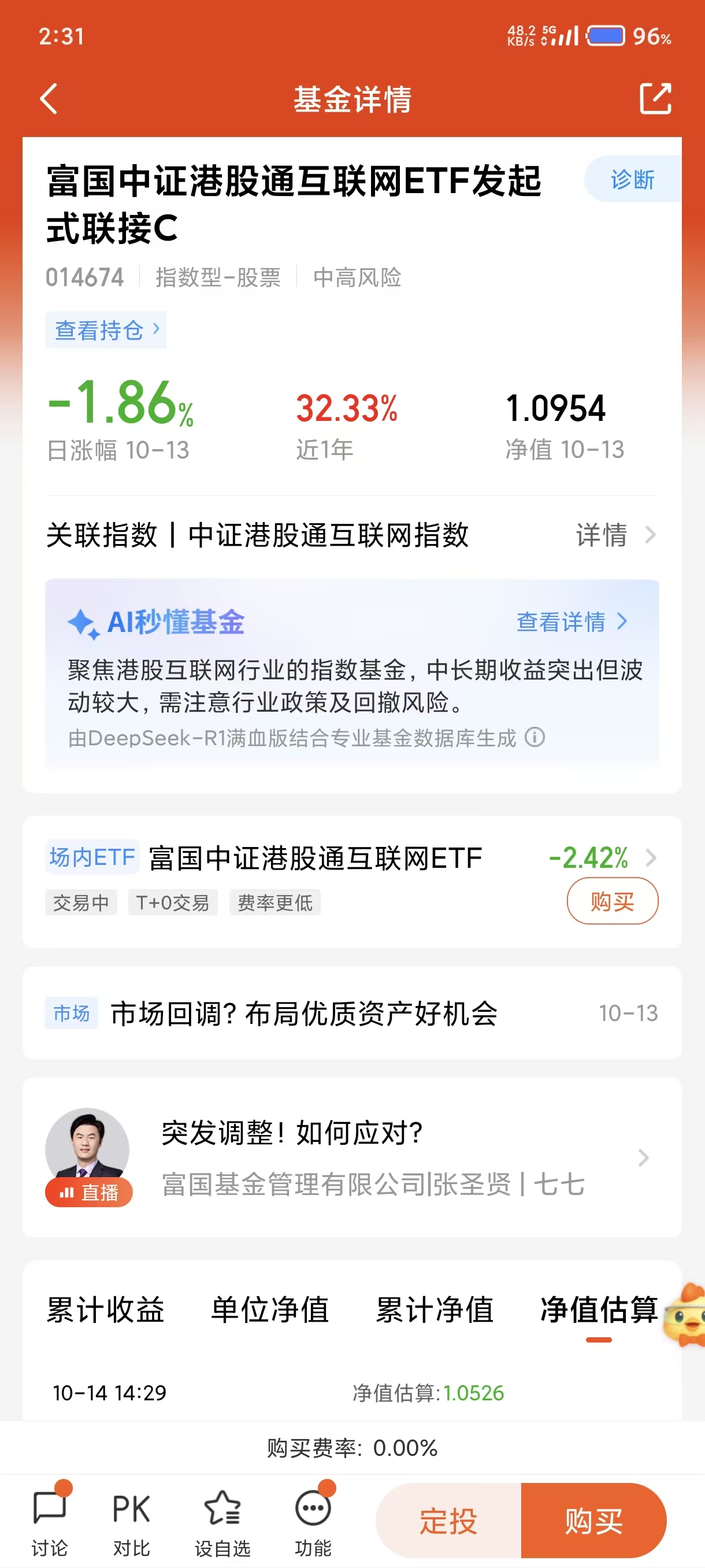 我今天继续加仓富国中证港股通互联网(014674)1000元。这只基金主要布局港股优质科技公司,小米、腾讯、美团、阿里巴巴等,他们都是科技龙头企业而且业绩增长有保障,近1年投资收益超过30%,表现十分优秀费率也很便宜,目前正是不错的布局机会。$富国中证港股通互联网ETF发起式联接C(OTCFUND|014674)$